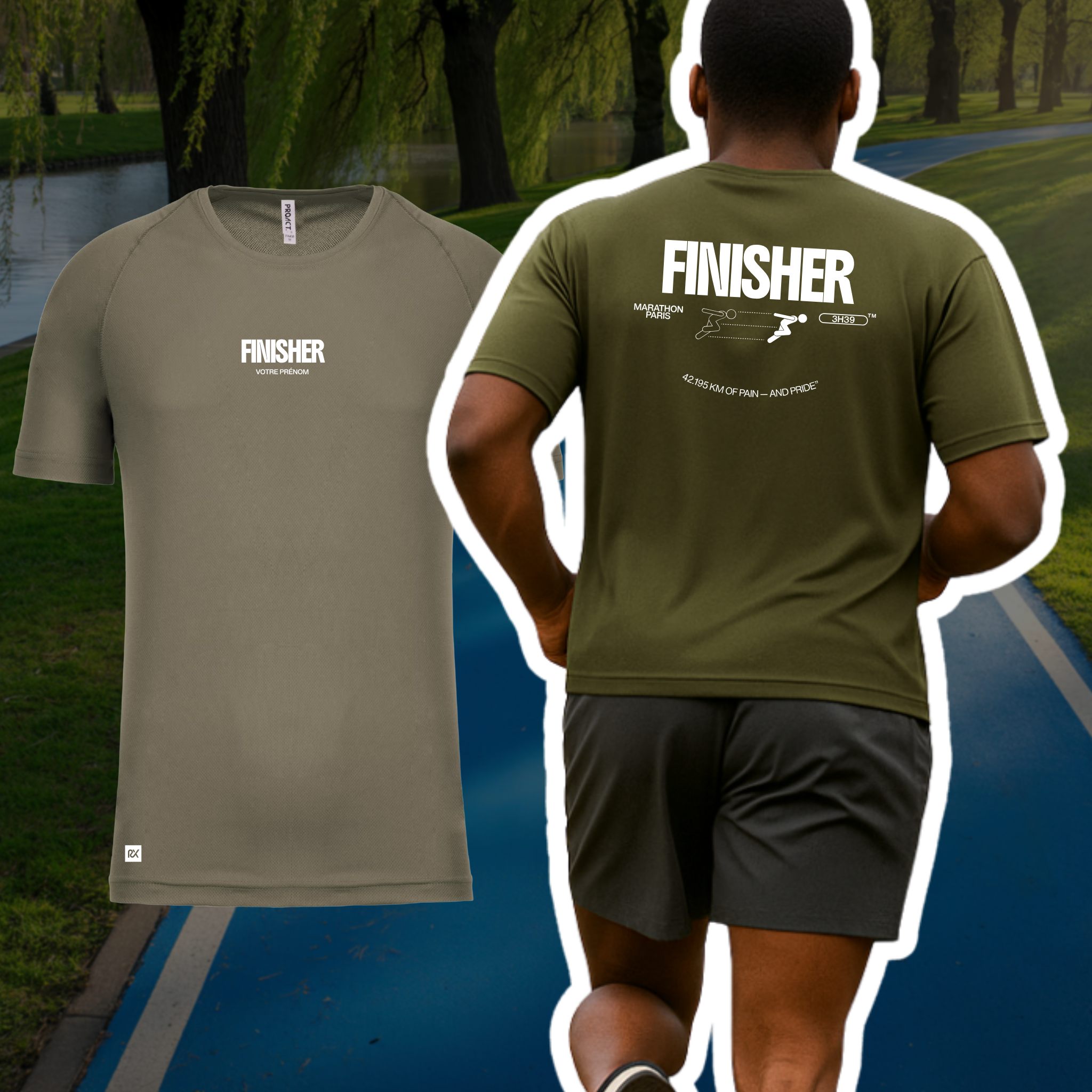 Start by choosing the product to personalize (men's or women's t-shirt) then select the design and information to get a live preview.