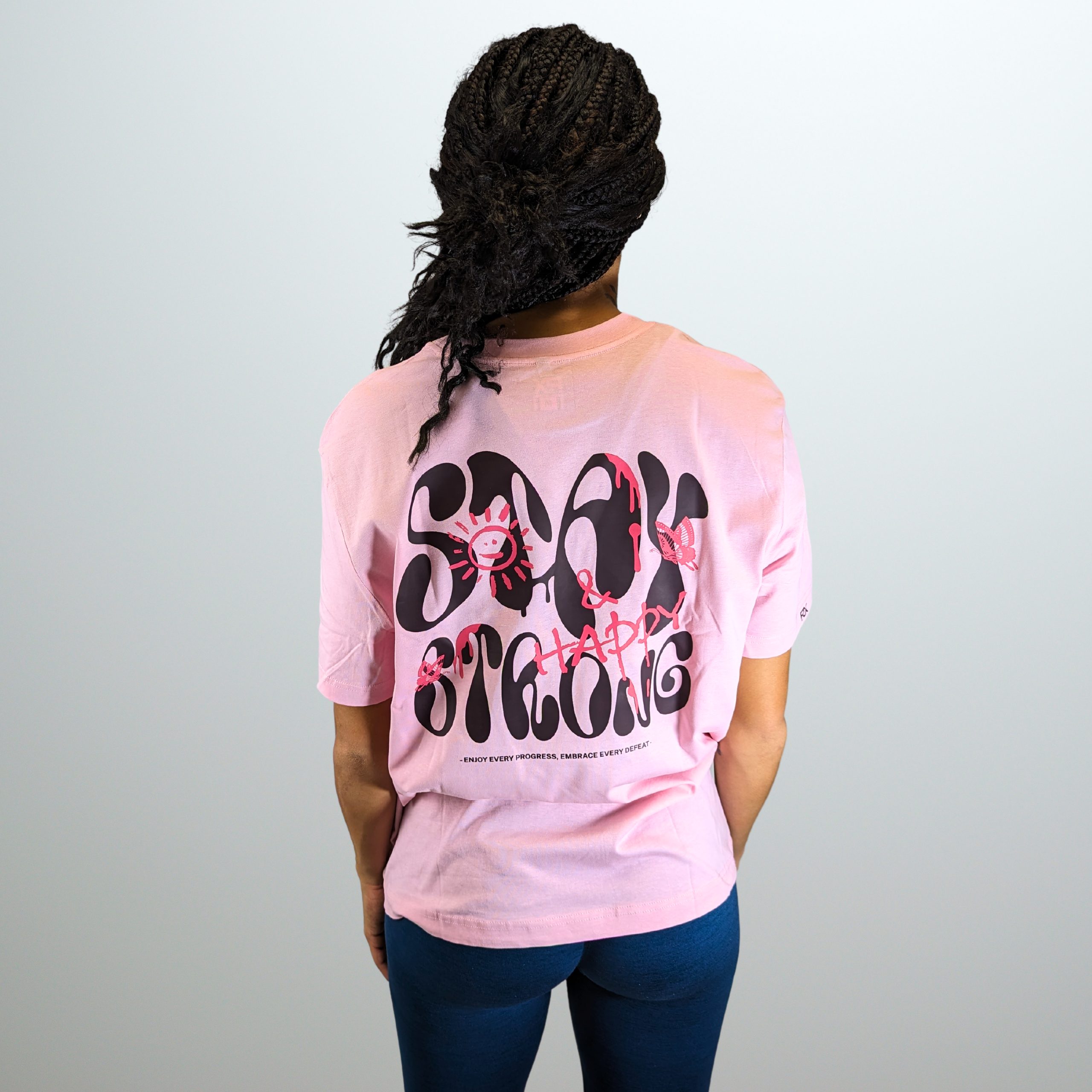 Show your determination with our "Stay Strong and Happy" Oversized T-Shirt. Featuring a minimalist design and inspiring message, this T-shirt combines style and comfort for a relaxed oversized fit.