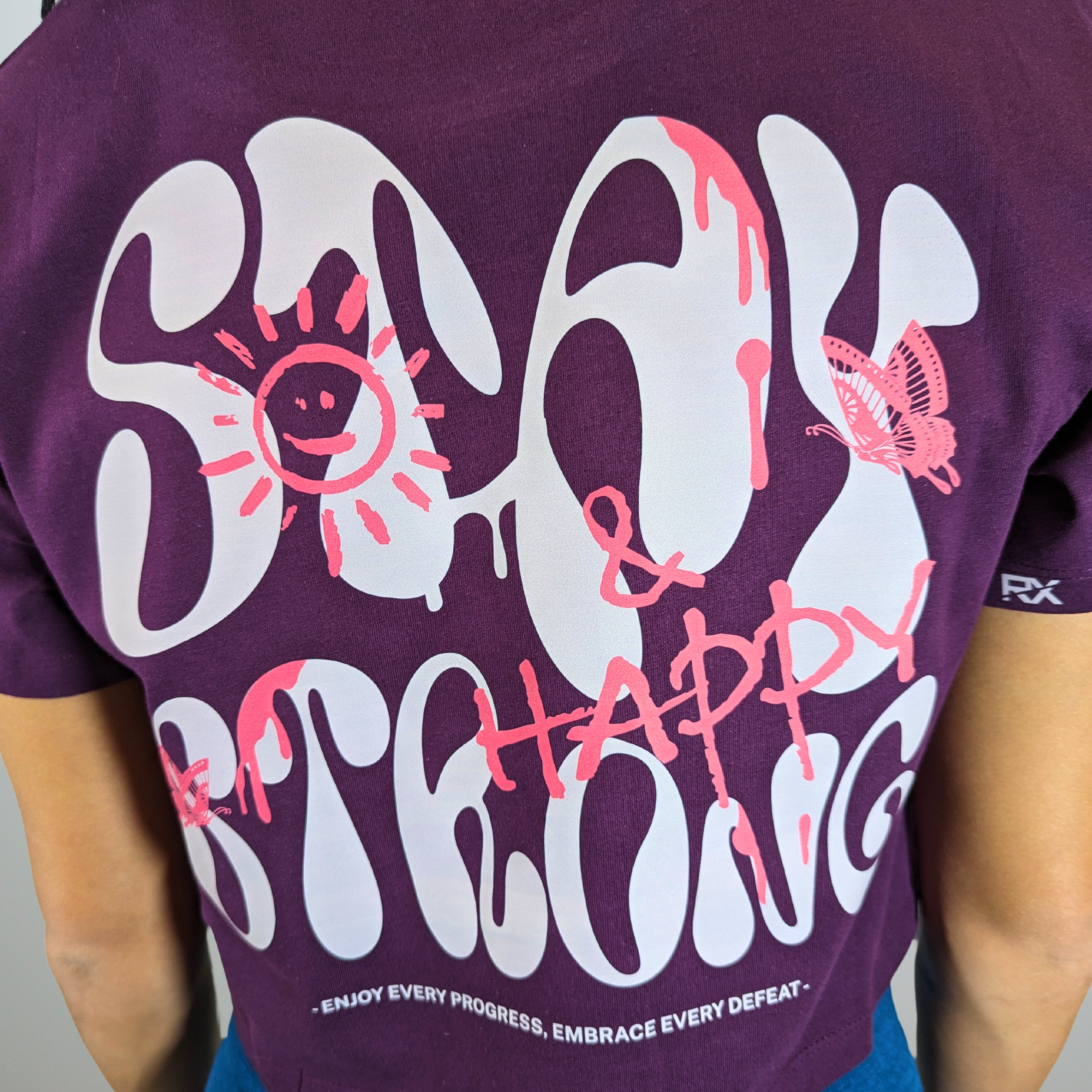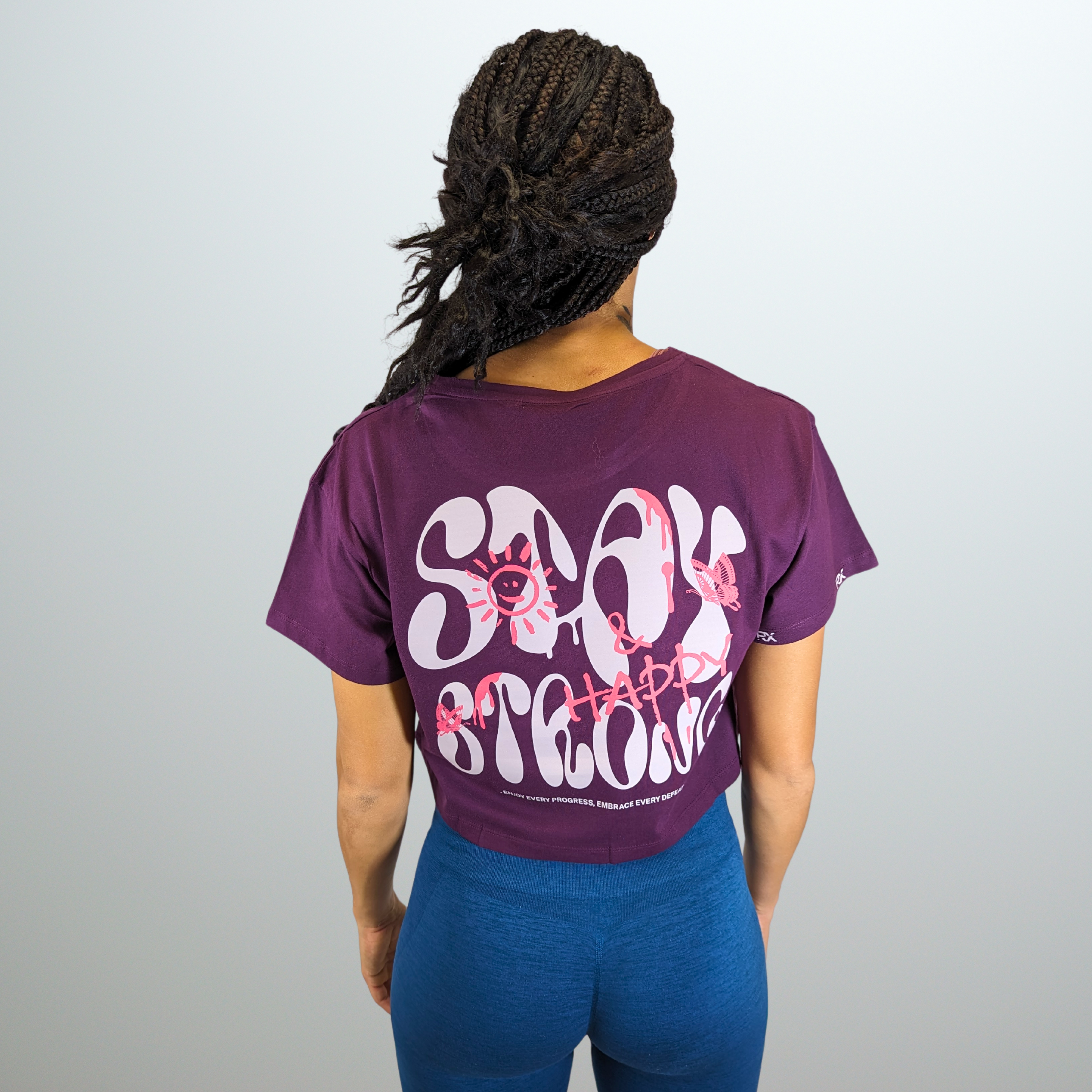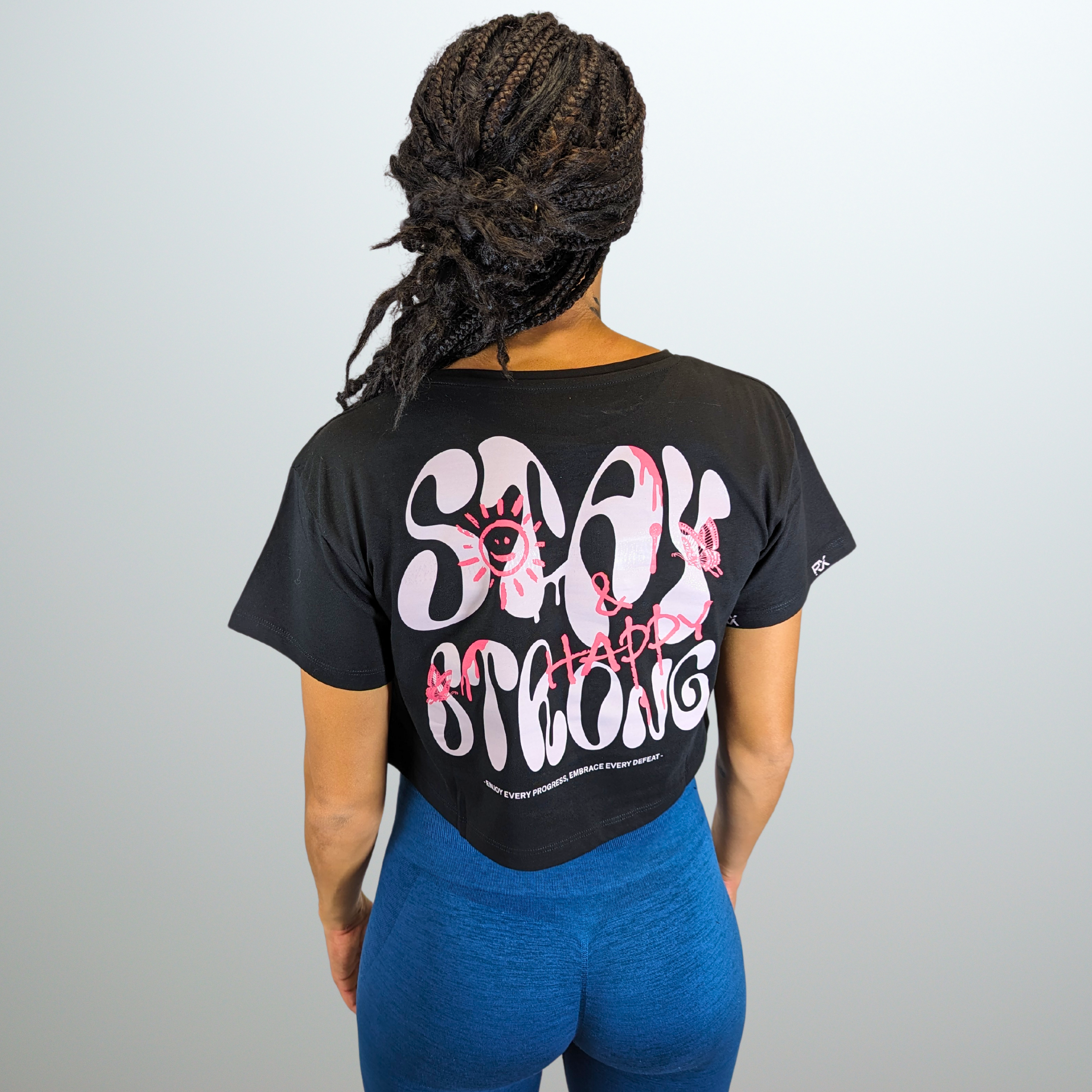 Muestra tu determinación con nuestro crop top "Stay Strong and Happy". Con un diseño minimalista y un mensaje inspirador, esta camiseta combina estilo y comodidad para un corte amplio agradable para el entrenamiento.